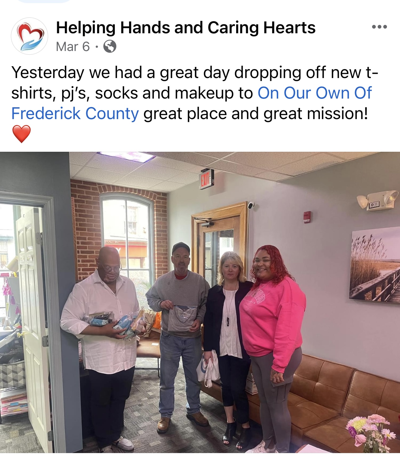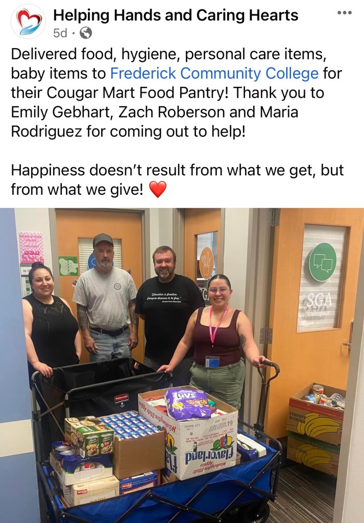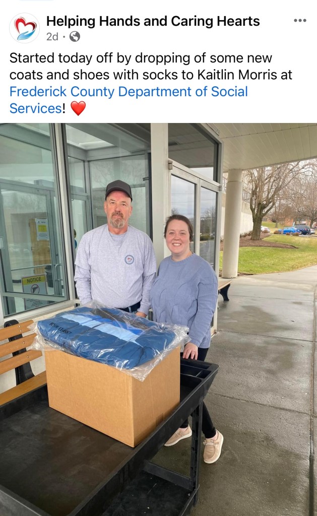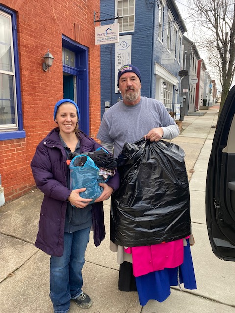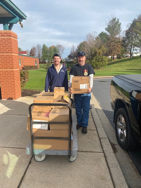 Brian from HHCH (hiding in the background) delivered supplies to Monica from SHIP of Frederick County and we also want to thank her staff and Will and Scott from the Rotary Club of New Market for helping unload.