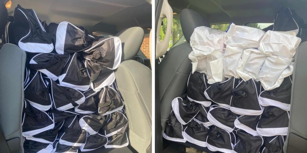 Backpacks full and ready for pickup for Salem Avenue Elementary School in Hagerstown.