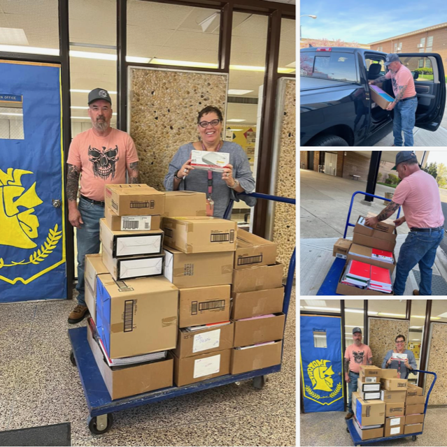 We delivered backpacks with supplies in them for K-5 to Salem Elementary School today, Asher from the school and Brian from HHCH!