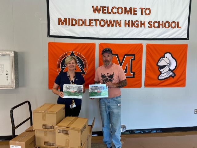 Delivered supplies to Laurel High School. Brian from HHCH and Pam Daniels from Laurel HS.