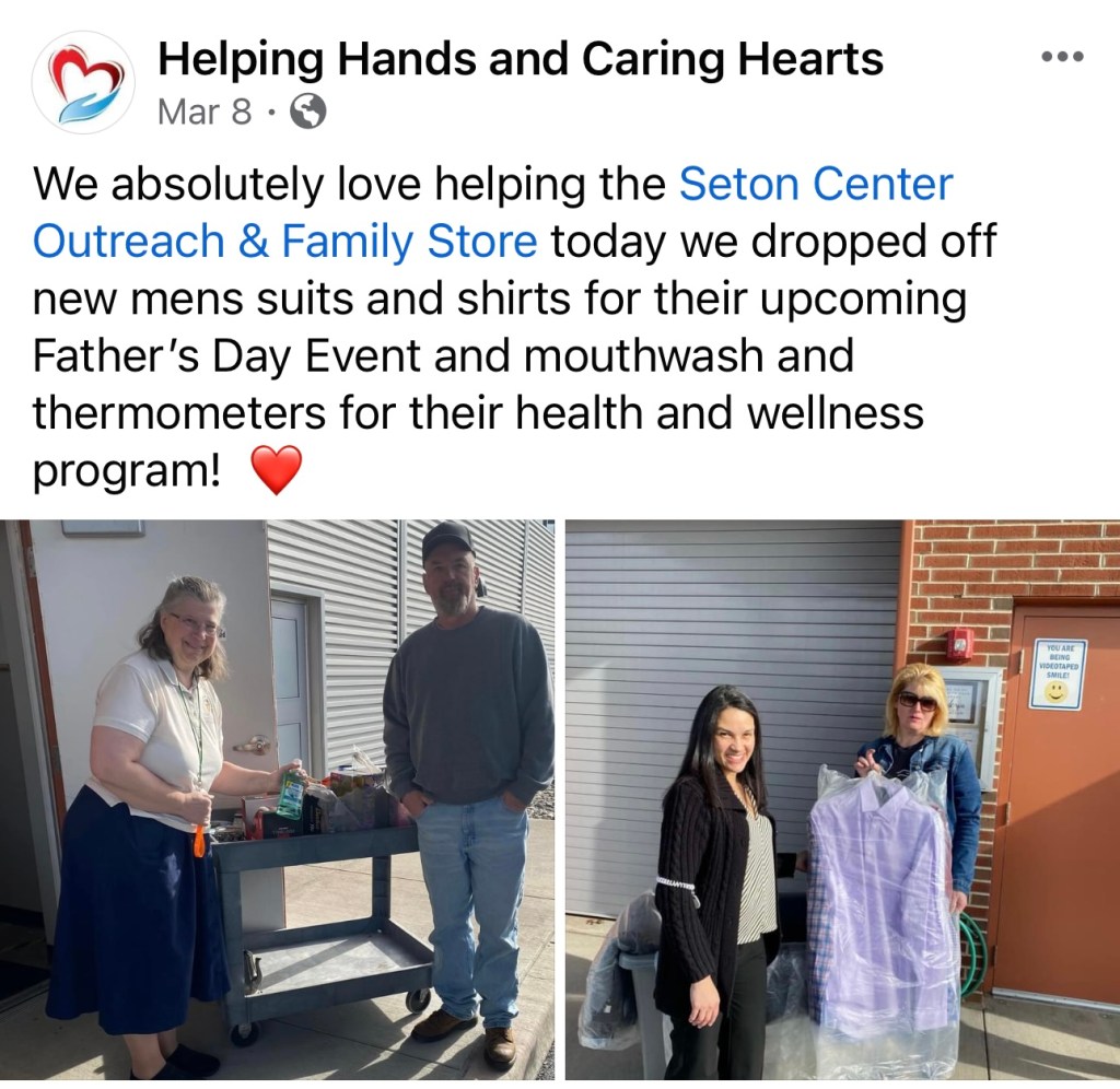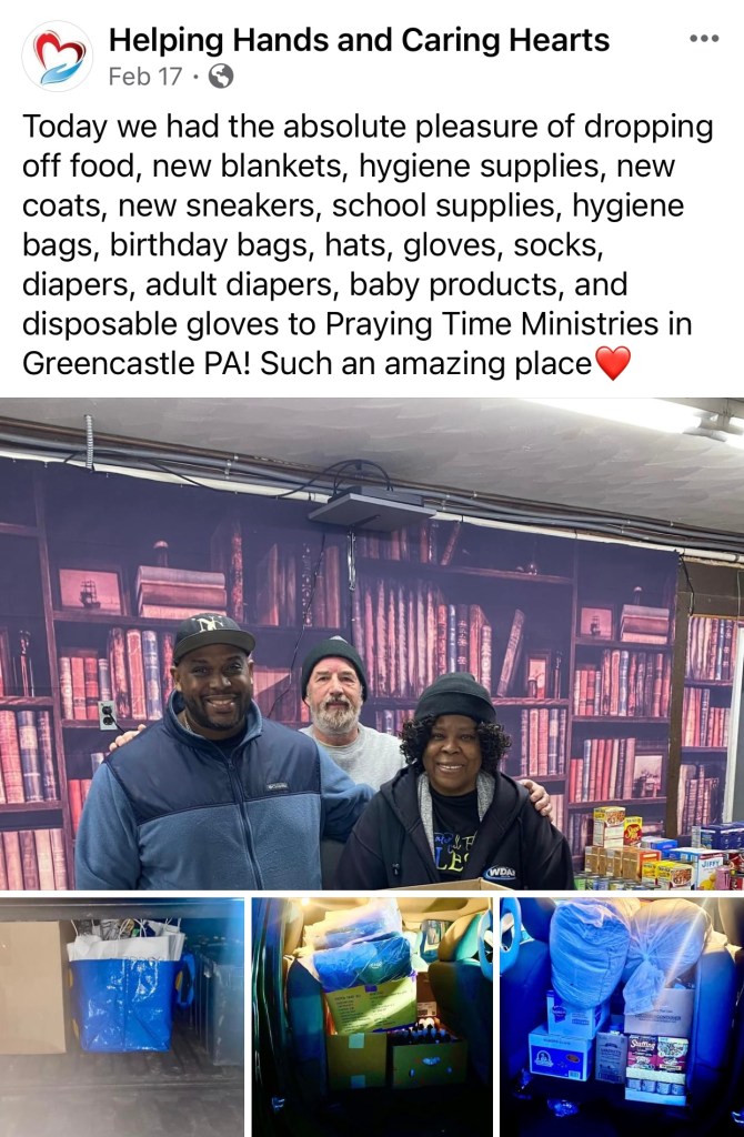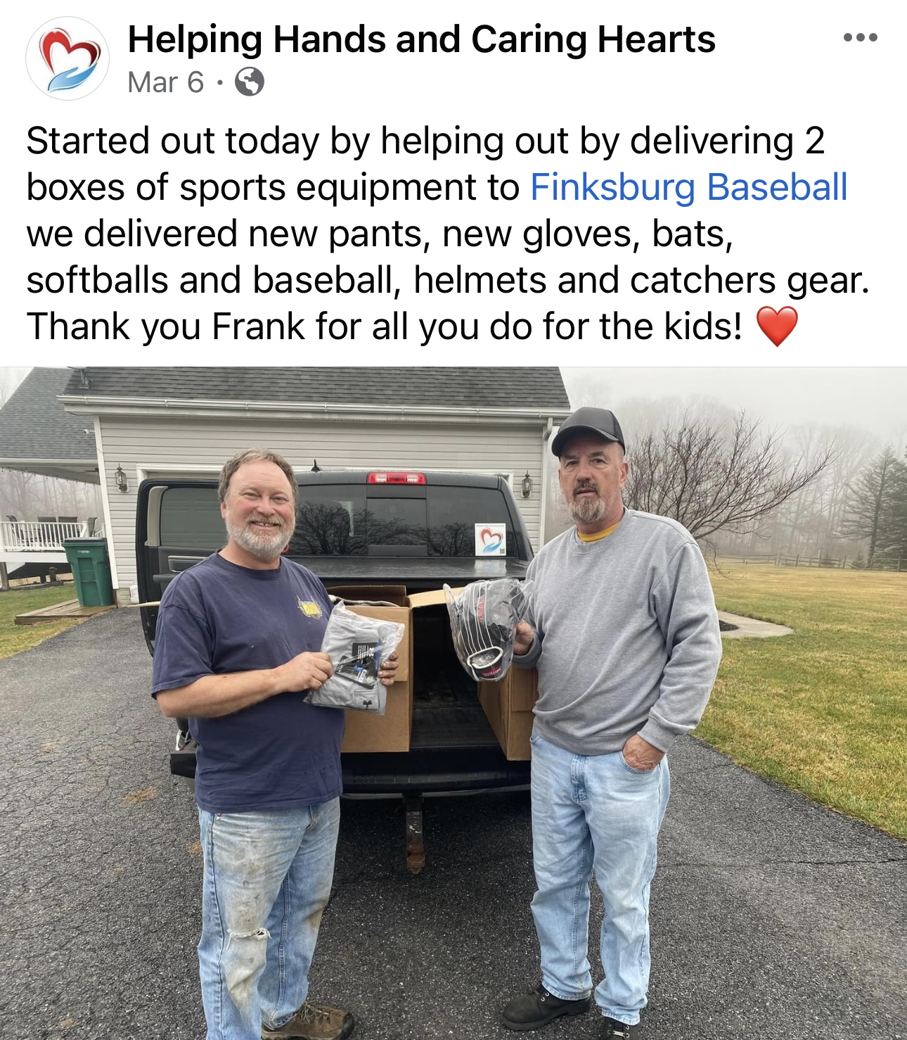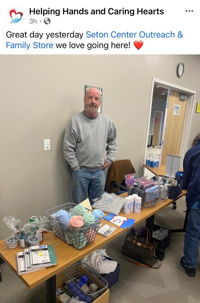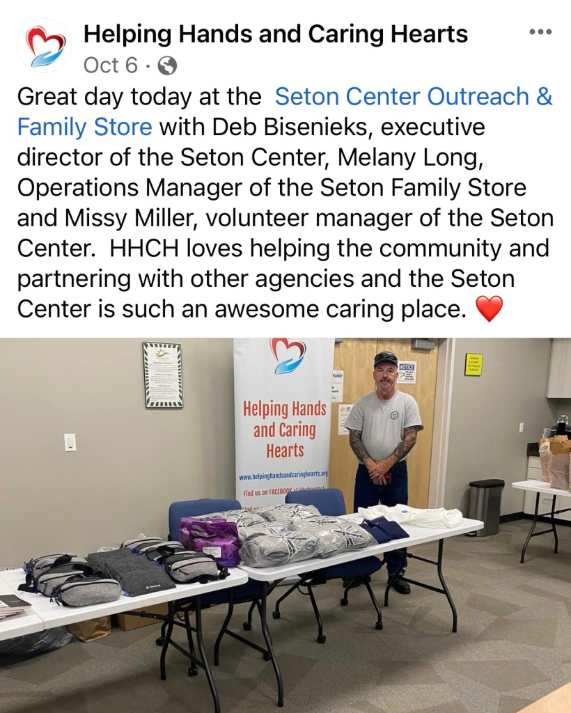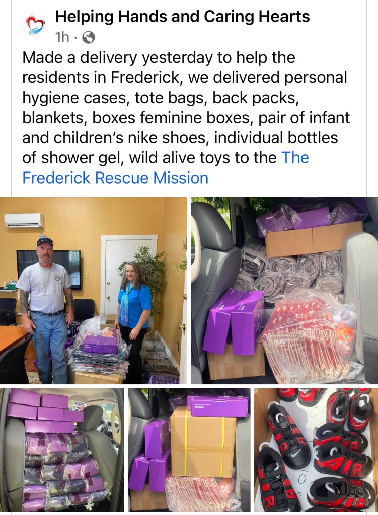 Our main mission is to help! I don’t care if it is another nonprofit, there is no competition only support for each other! HHCH delivering cleats and some other items to John from McSisters Foundation.
