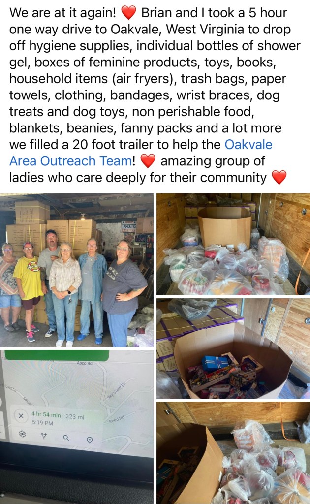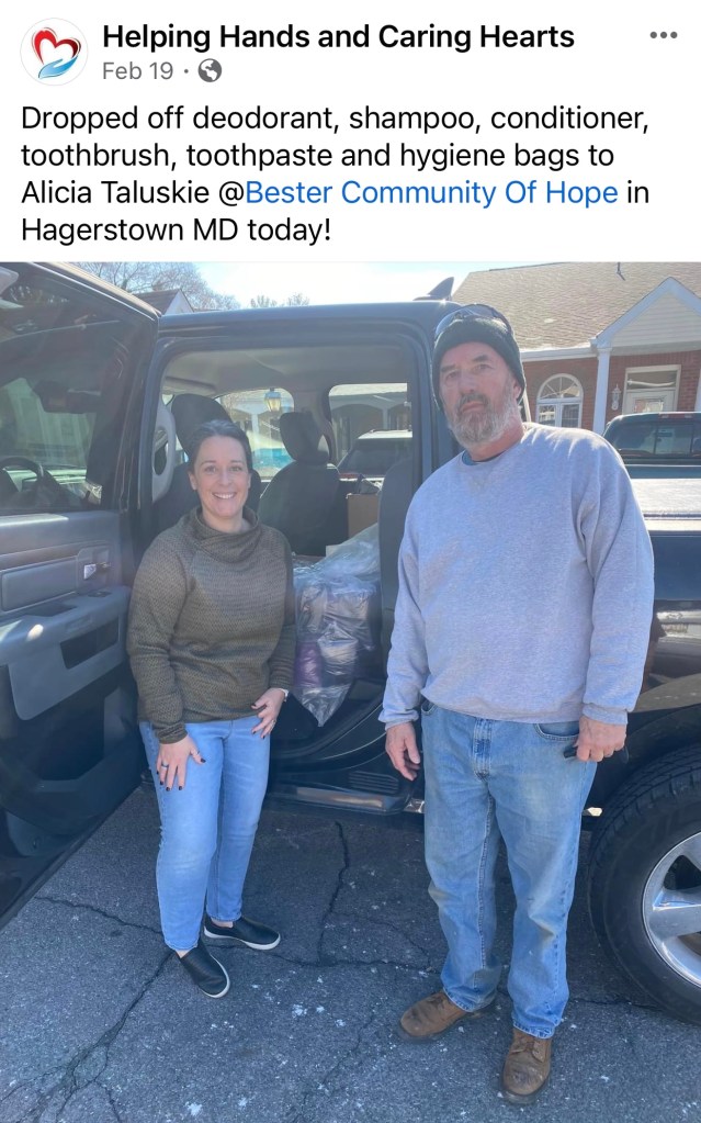 Brian from HHCH delivered to Lysmariam Feliciano Verdejo supplies that she is delivering to the VA hospital in Martinsburg West Virginia.