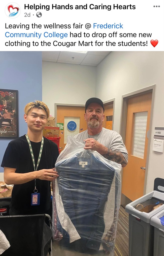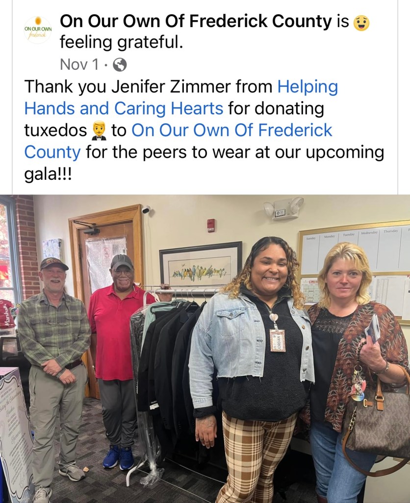 Delivered men’s tailored brand suits to Asian – American Center of Frederick