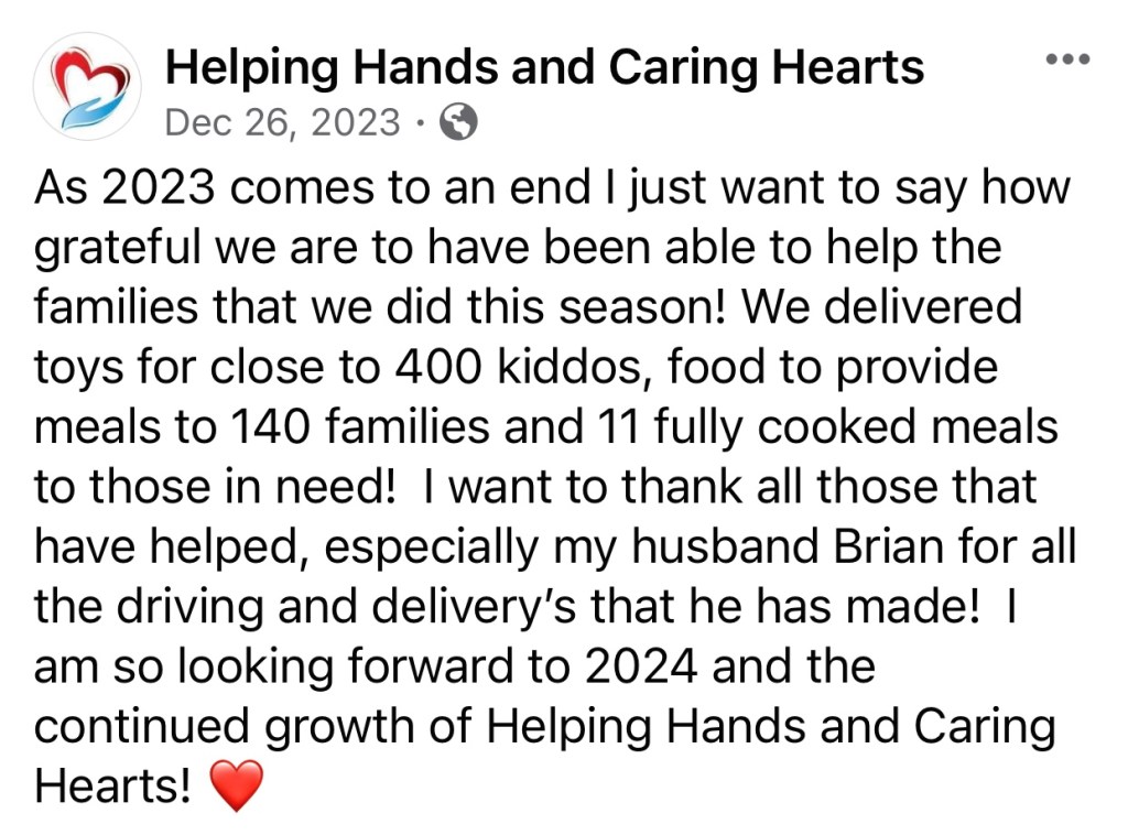 From 10/1/2022 to 2/28/23 Helping Hands and Caring Hearts project is “Winter Preparedness 2022-2023”. It is to ensure the elderly, veterans, low income and disabled are ready and equipped for the upcoming winter with the needed heating sources, food, warm clothing. Making sure the home is weatherized, etc. (Watch for updates)