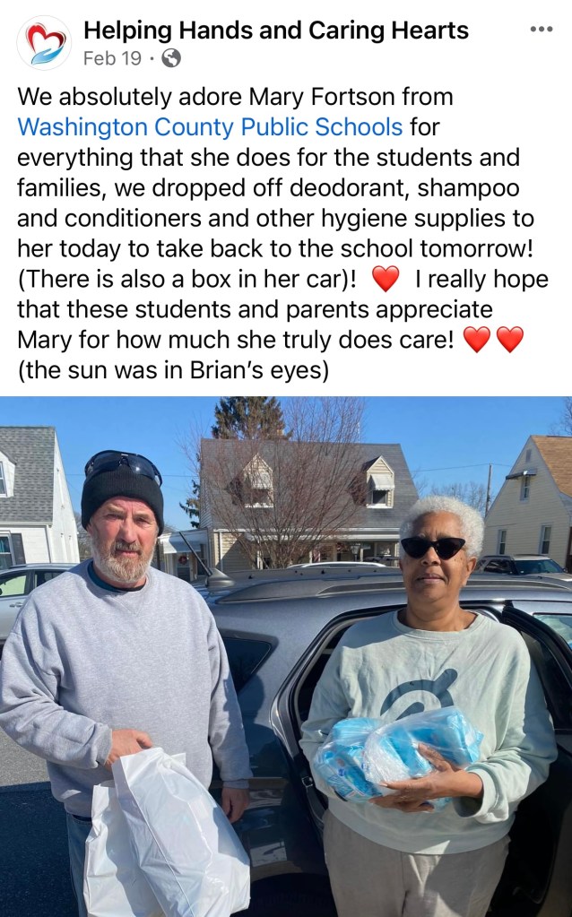 Today was a busy day…we delivered supplies to Mary who after 33 years as a classroom teacher, she recently became the Community Specialist for South Hagerstown High School.