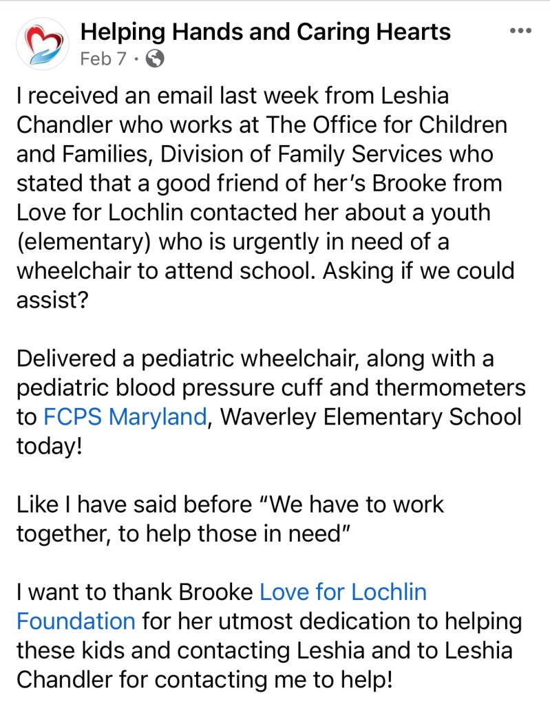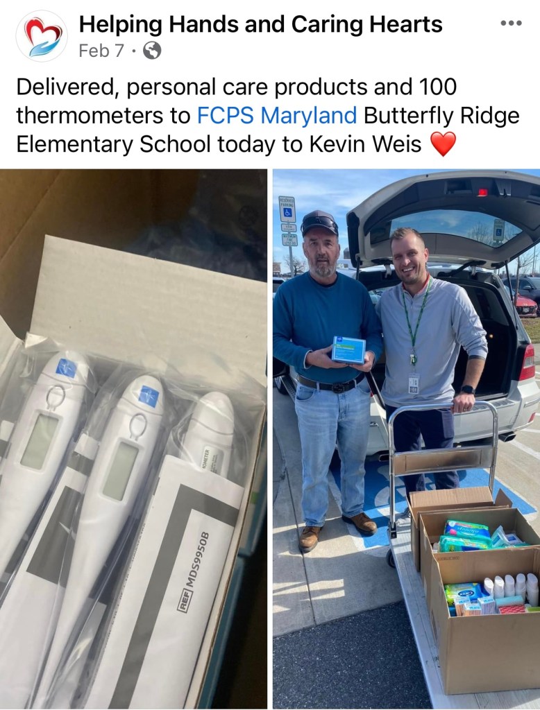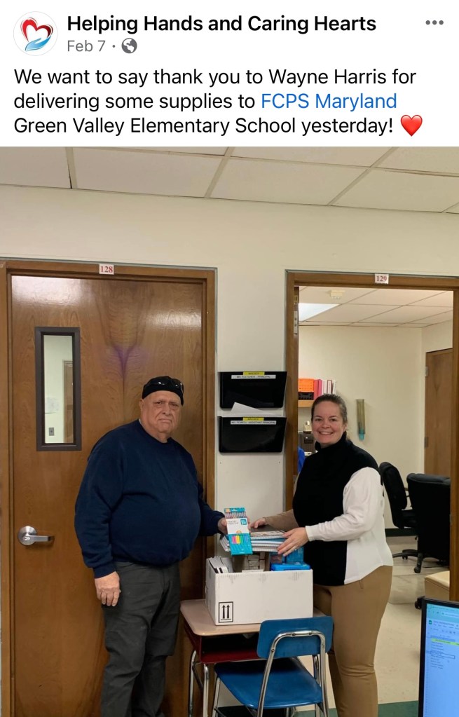 Helping Hands and Caring Hearts made another delivery of school supplies to Elmer A Wolfe in Union Bridge Maryland.