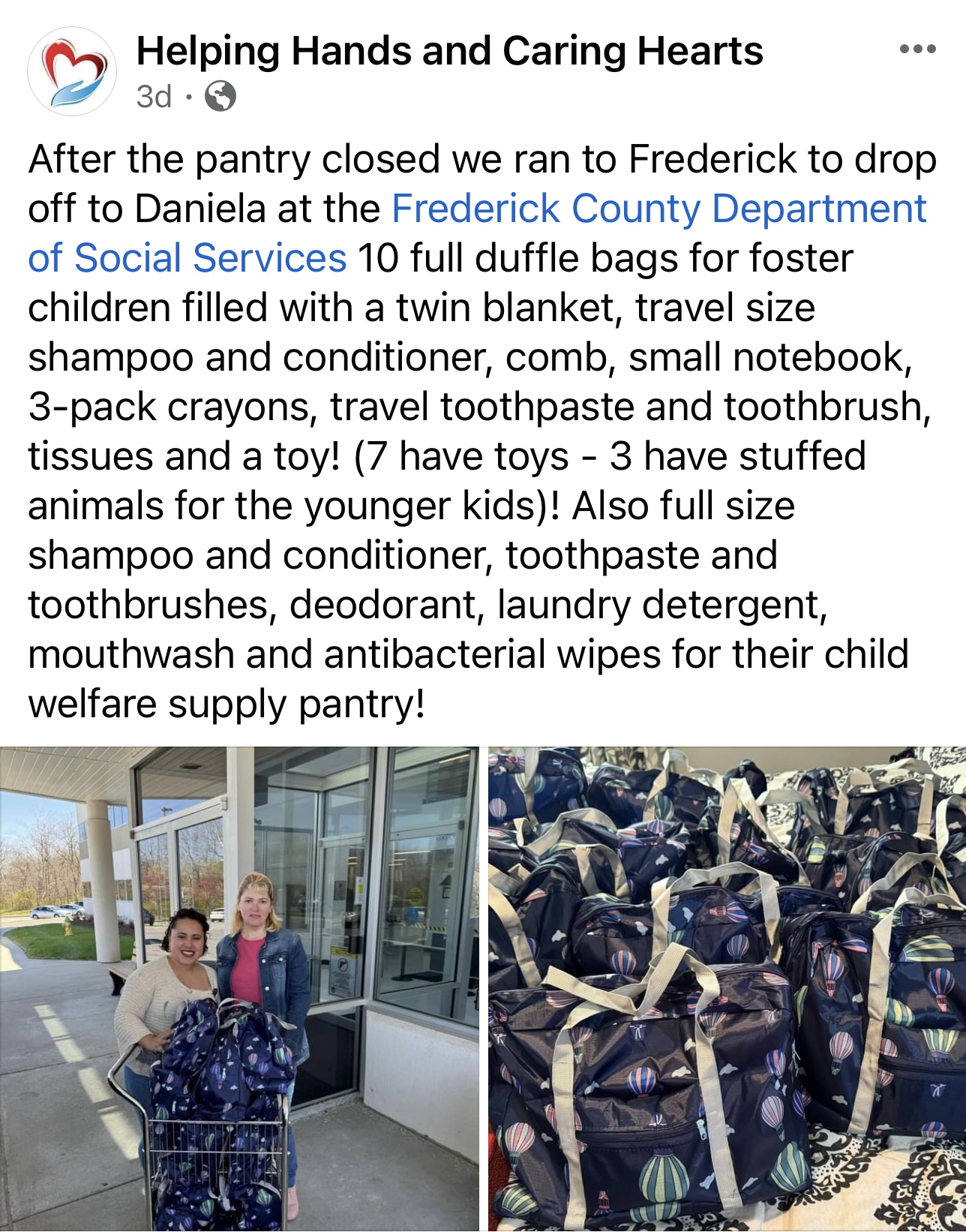 These bags of toys and gift bag were for a family of foster kids that an absolutely amazing family took in without even thinking about it. HHCH loves what we do but people like this family seriously makes you know that people do care we need more people like this family.